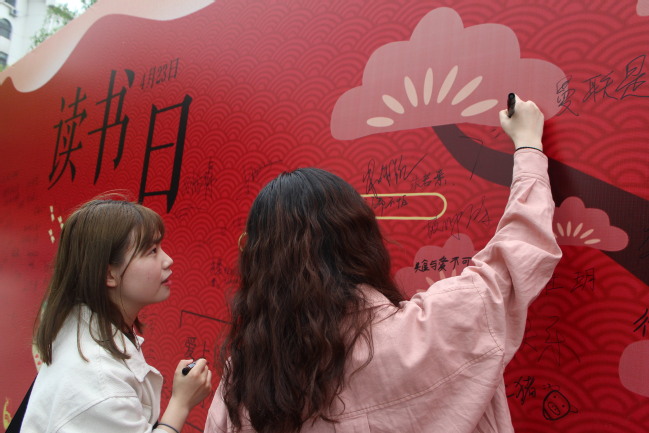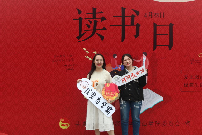 4月23日是第24个世界读书日。我院团委宣传部在食堂广场开展读书日大型签名活动,号召越来越多的师生“爱读书、读好书”。将“读书照”印刷成明信片发放给同学们,并随机采访同学们的读书感悟,营造出良好的校园文化氛围。