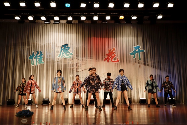 凡丁剧社的小品《上学那些事儿》以诙谐幽默的表演,让同学们在开怀大笑的同时又怀念起那段美好的校园时光。热舞《对面的来一局》活力迸发,彰显青春无限的魅力;华丽多姿的音乐,映衬青春绚丽的风采。舞蹈《金陵十三钗》以婀娜的舞姿在女性柔弱身躯和坚强意志的反差中凸显出人格的张力,散发着崇高理想和坚定信念的耀眼光芒。诗歌朗诵《聆听青年》仿佛让我们重回百年之前,慷慨激昂的朗诵震撼每位在场观众的内心,让我们感受到强烈的爱国情怀,五四的旗帜始终闪烁着耀眼的光芒。火舞堂再一次的精彩表演《闪耀五四》,整齐划一的步伐充实着刚硬的气魄,不断变换的身影洋溢着无限的动感。
