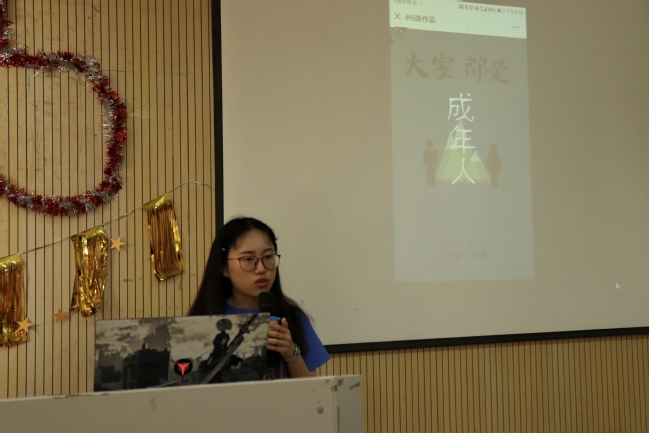 活动开始,由主持人对活动的主题及流程进行介绍。本次活动主题突出通俗性、科普性、趣味性。主要有三方面主题:纪念五四运动100周年、日常科学知识、以及破解科学谣言。本次活动流程:首先由本活动各位选手依次现场进行自我介绍及H5作品展示,介绍自己的作品,同时评委小组进行现场打分,后有各位工作人员进行结果统计,最后公布结果排名。