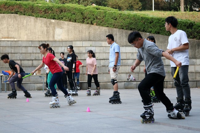 为丰富校园文化生活,推广轮滑活动,2019年5月24日17时,由我院健身协会举办的“趣味滑轮赛”活动于四教外广场成功举行。健身协会轮滑社成员、我院其他滑轮爱好者参加比赛。