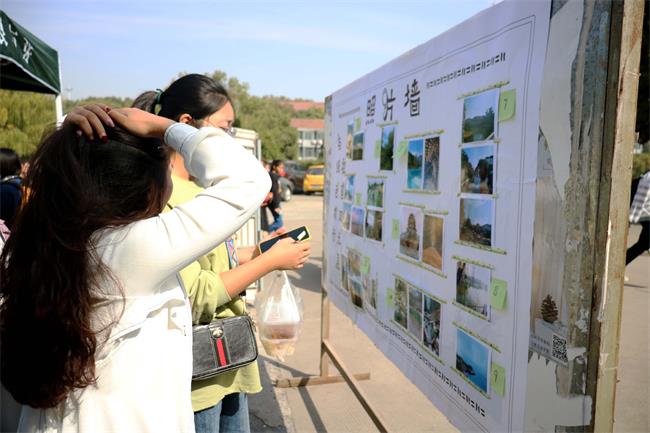 “与绿色同行,祖国风光展”活动分为三个阶段。第一阶段是从10月21日开始的为期10日的照片征集活动。征集的作品包括暑假外出旅游的照片、秀丽的山水、绿色风光等。第二阶段为线上投票选出较优秀的作品,进行加工制作成作品展。第三阶段在食堂门口设立签名墙,将优秀作品展示给我院学生。由我院学生自由投票,选出他们喜欢的照片。同学们参与度高,现场氛围活跃。在11月4日公布获奖名单,李卓倩同学荣获第一名、李游同学荣获第二名、葛清同学荣获第三名。