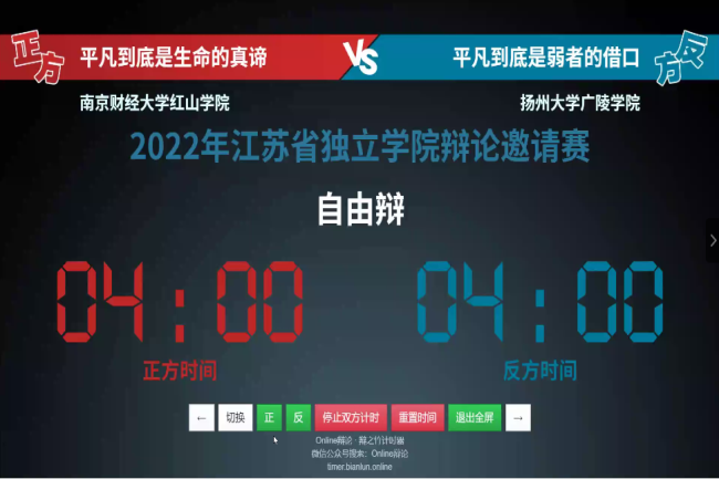 5月15日下午,由我院团委主办、演讲与口才协会组织承办的“江苏省独立学院辩论邀请赛”决赛于线上腾讯会议举行。