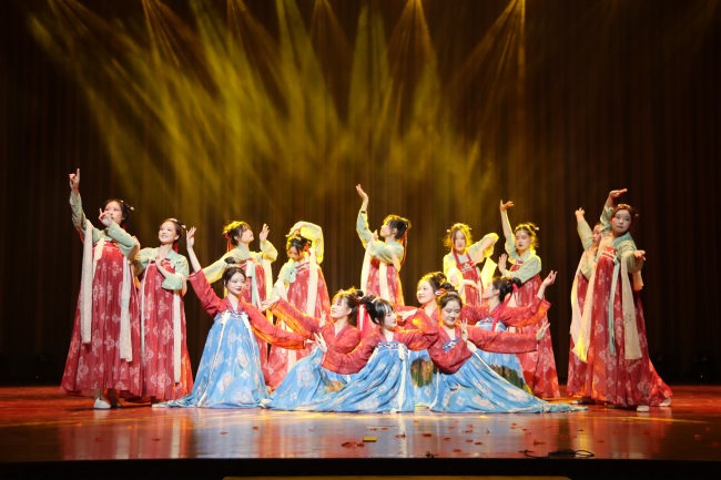 本次晚会以“歌舞飞扬 红心向上”为主题,15个节目轮番登上舞台。