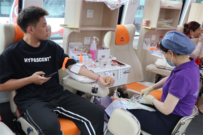 6月3日,我院后勤管理处联合青年志愿者协会在食堂广场开展为期两天的“无偿献血”活动。本次活动以“人道、博爱、奉献”为理念,旨在号召全院师生积极参与到献血活动中来。