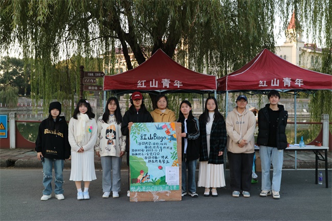 为鼓励学生走出宿舍,感受大自然,11月19日,我院“绿缘”根与芽社团于食堂门口举办“红山Bingo”活动。