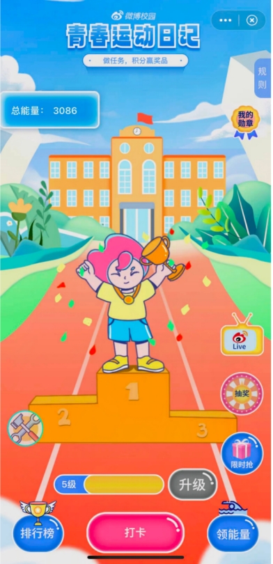 随着成都大运会与杭州亚运会的相继举办,大学生运动意识逐渐提升。为承接青少年运动热情,培养青少年运动习惯,挖掘以体育人的精神资源,加强以体育人的项目建设,由共青团中央青年发展部、国家体育总局群众体育司主办,微博校园承办的#青春运动日记#全国大学生团员常态化运动打卡活动,诚挚邀请全国青少年通过网络打卡记录日常运动,养成健康生活习惯,掀起互联网全民健身新热潮。
