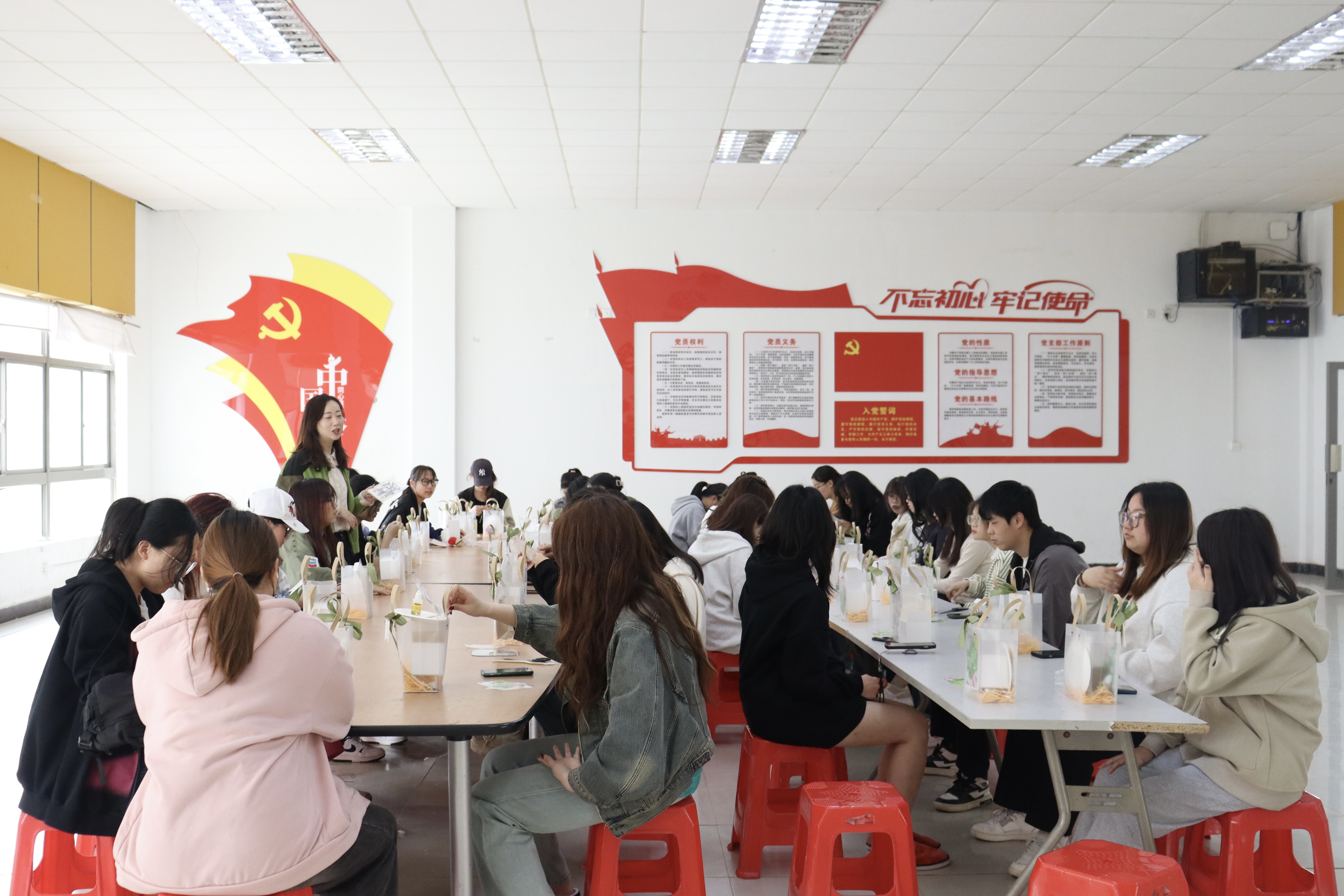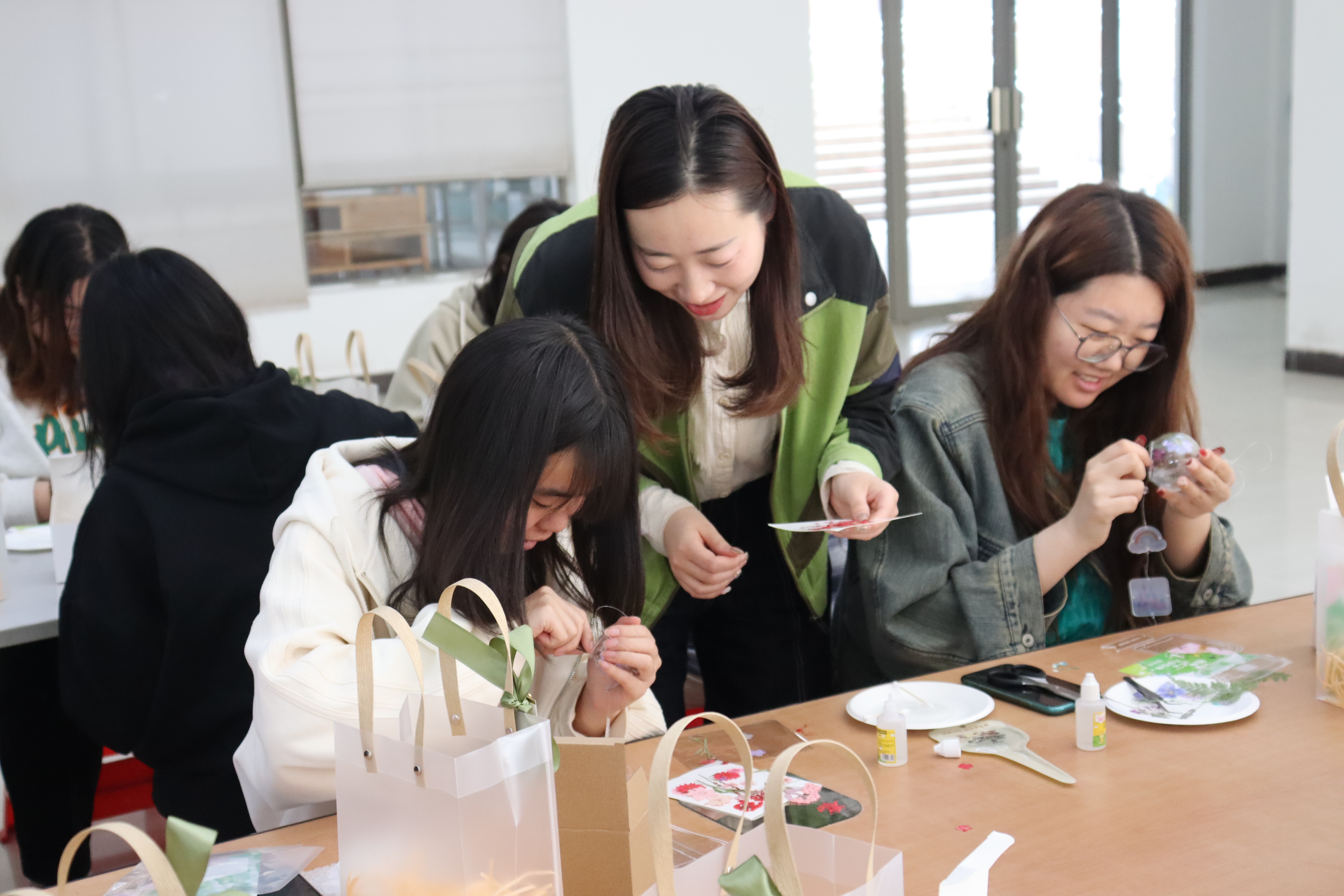 活动旨在让同学们通过手工制作风铃形式来展现春天。参与活动的同学借助制作手工风铃的方式将春天定格。活动期间,参与者充分发挥自己的想象力和创造力,沉浸在Diy手工风铃活动中,同学们参与度极高,活动现场氛围活跃。