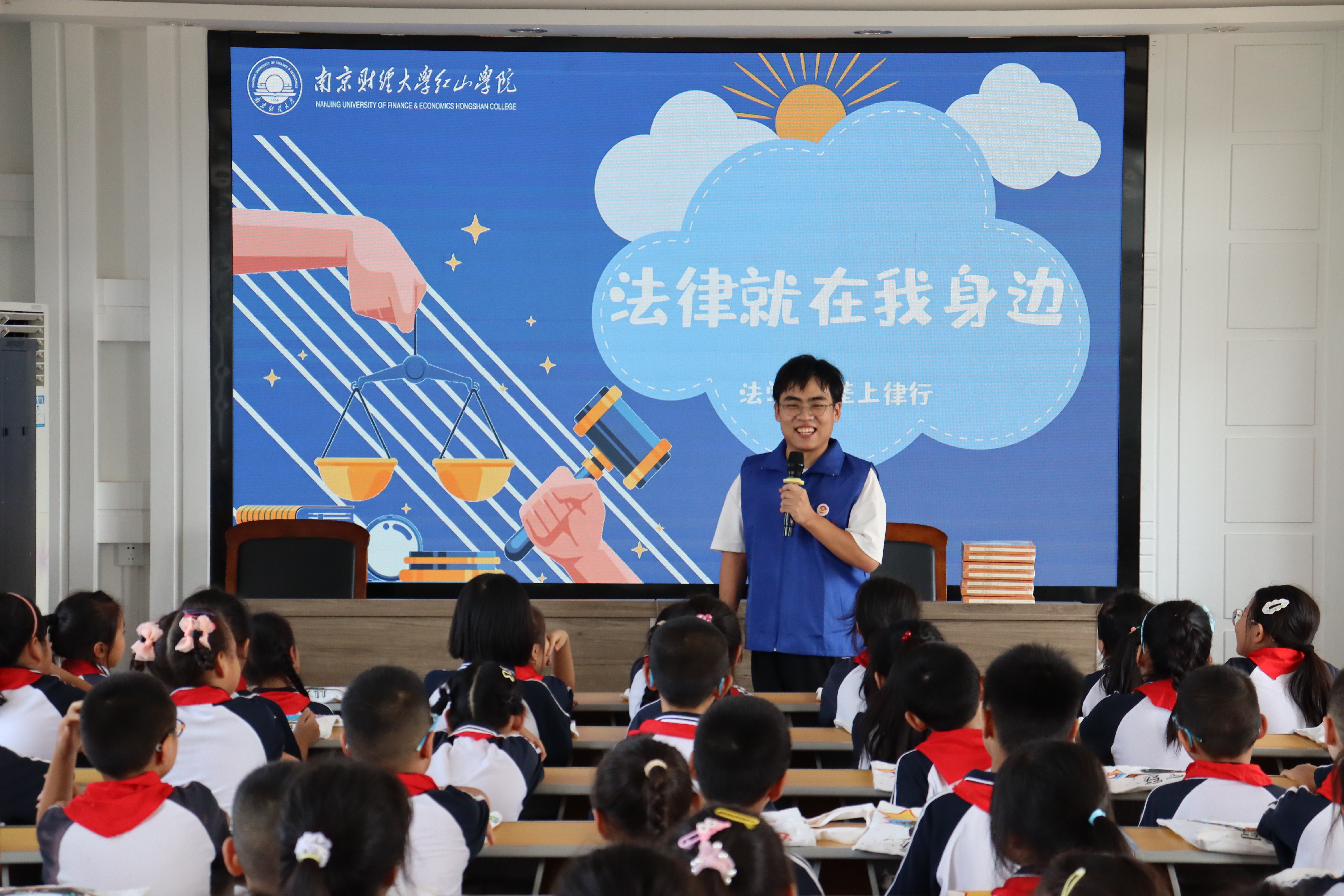 宣讲过程中,实践团成员以“法小豸”为切入点,借助獬豸石像的形象阐释法律正义,拉近孩子们与法律的距离。同时以《西游记》故事线索为引,引导同学们理解法律作为社会共同规则的意义。为让法律知识更易理解,队员们将法律体系喻为“温馨家园”,重点讲解宪法对未成年人的保护作用、民法典与日常生活的关联、未成年人保护法对青少年权益的专门保障,并简要介绍相关法律条文,凸显法律与生活的紧密联系。此外,队员们还结合实际案例,详细解读权利与义务的关系,帮助同学们深刻理解法律的双重特性,明确法律在现实场景中的适用逻辑。
