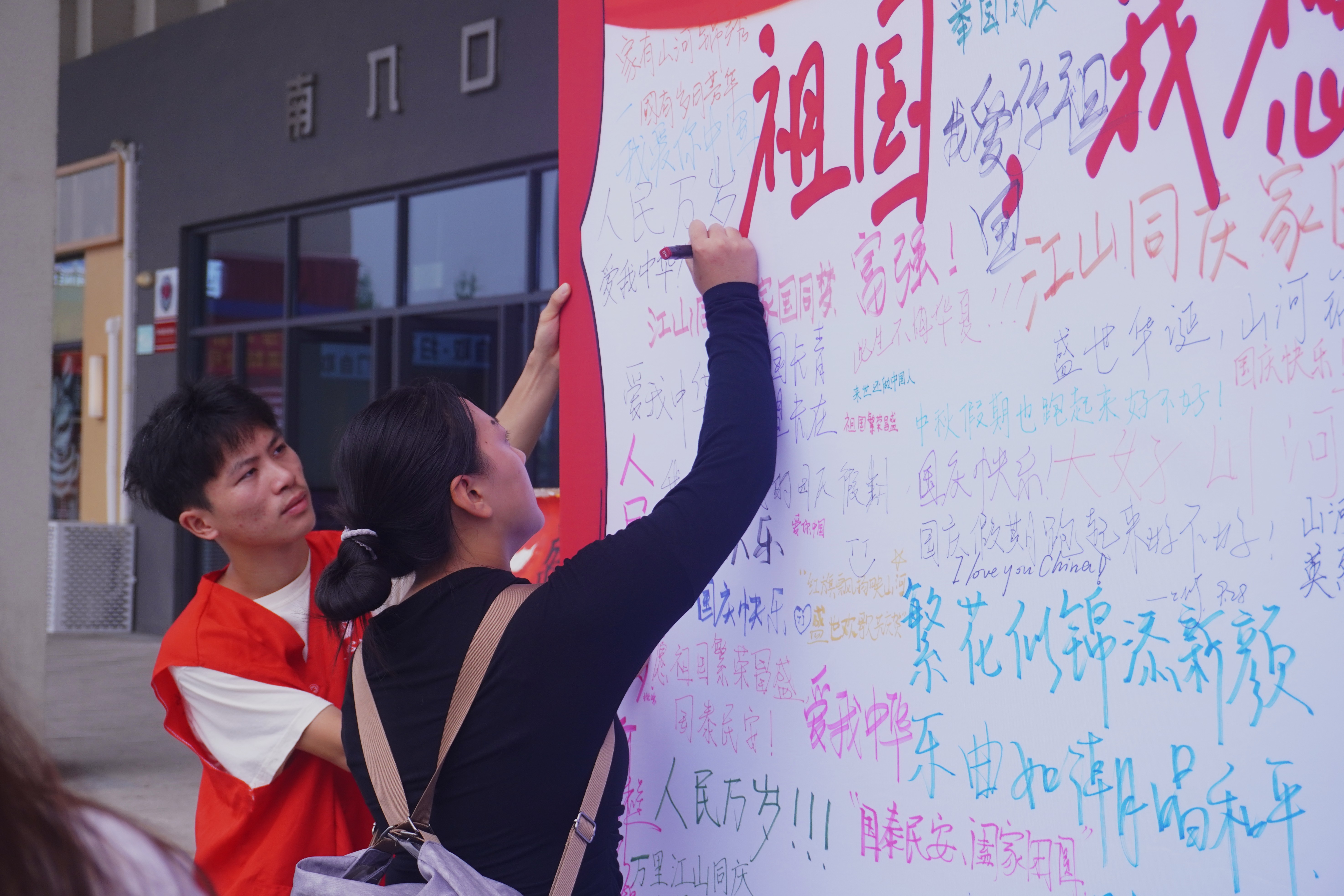 “国庆祝福墙”活动在校园内营造浓厚的国庆氛围,让大家在书写与交流中加深对祖国的热爱,为校园生活注入鲜明的活力。