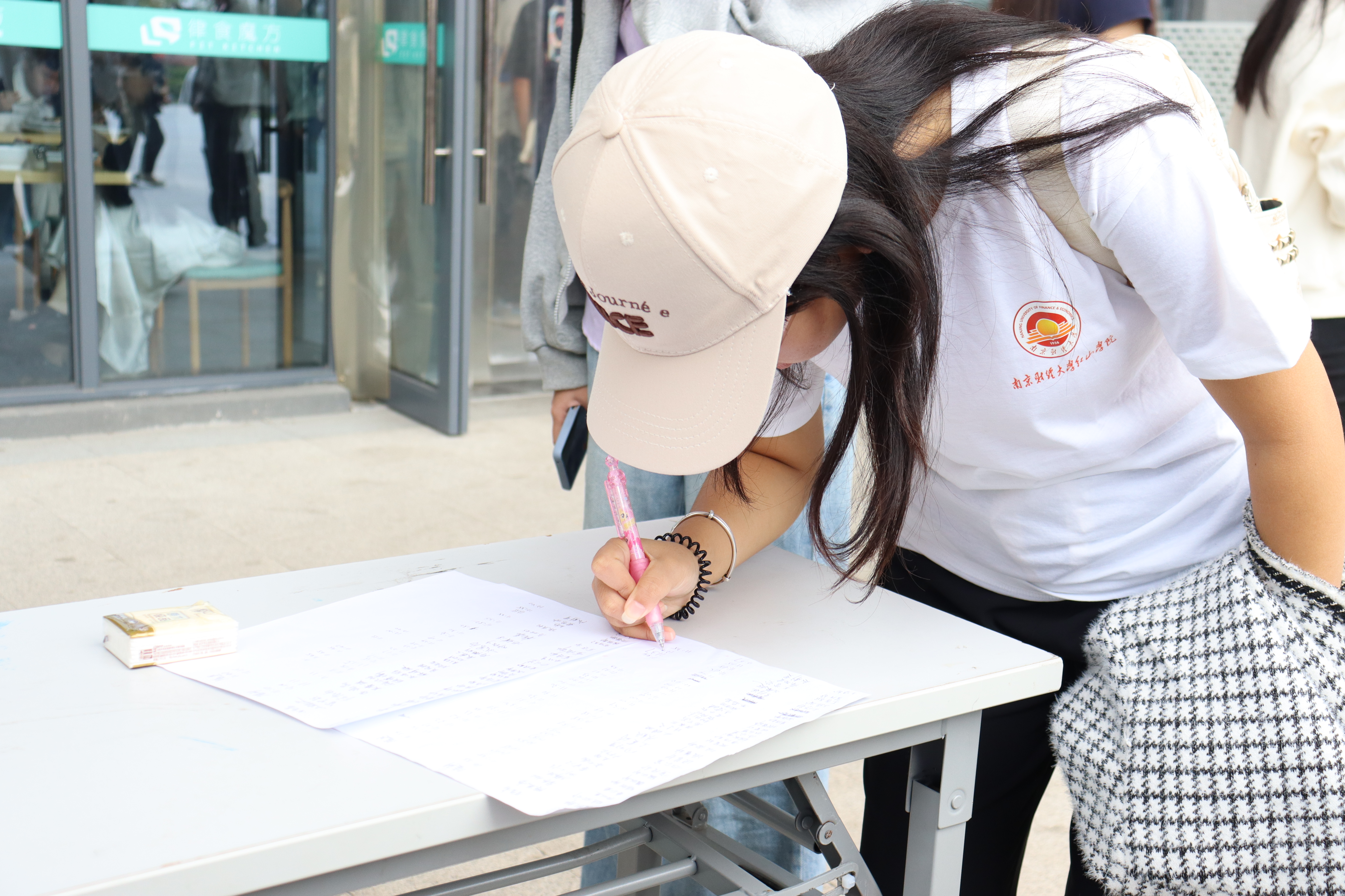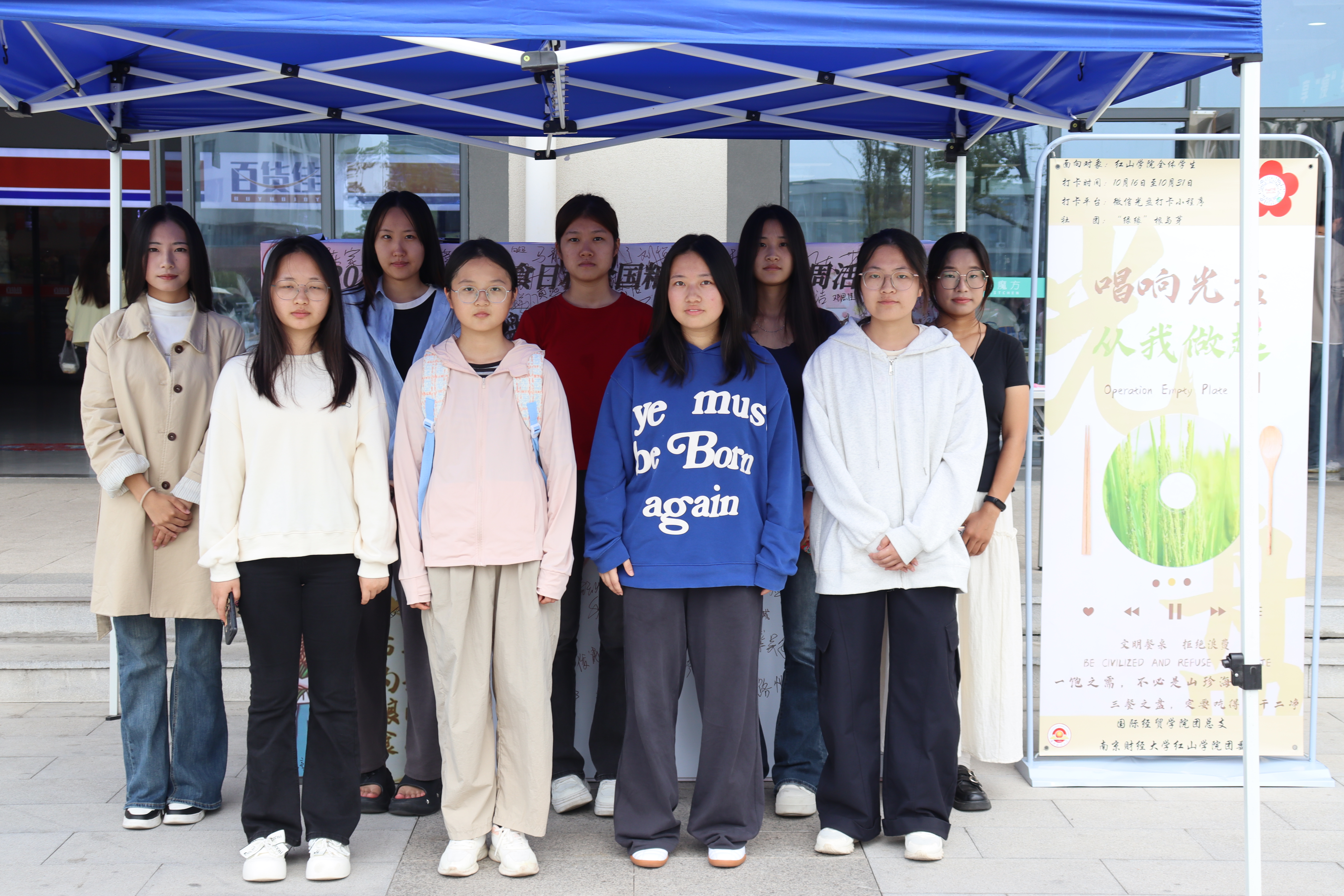 10月15日,绿缘根与芽社团在高淳校区食堂广场举办“节粮光盘行动”送你一朵小红花活动。我院学生积极参与,现场氛围热烈。