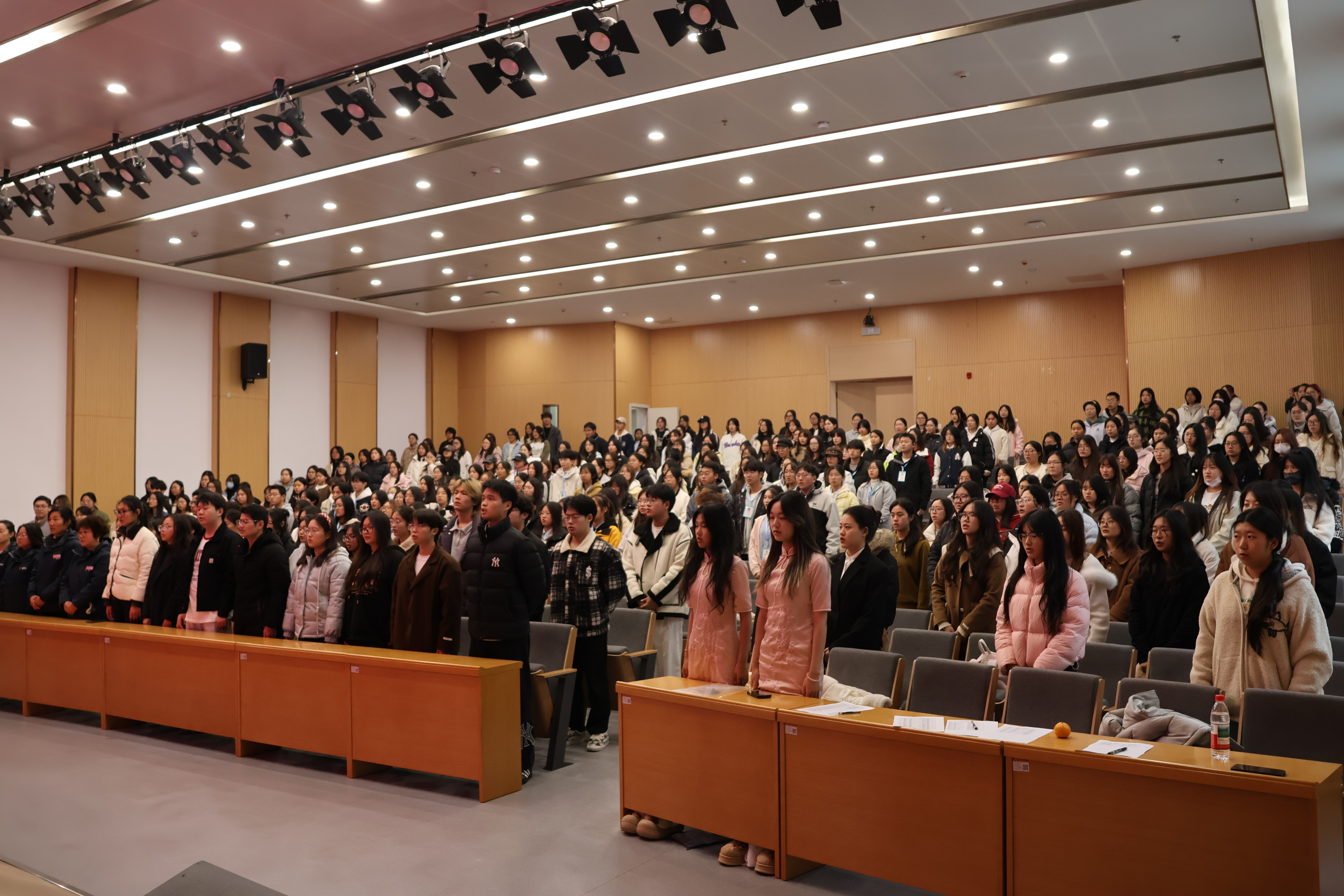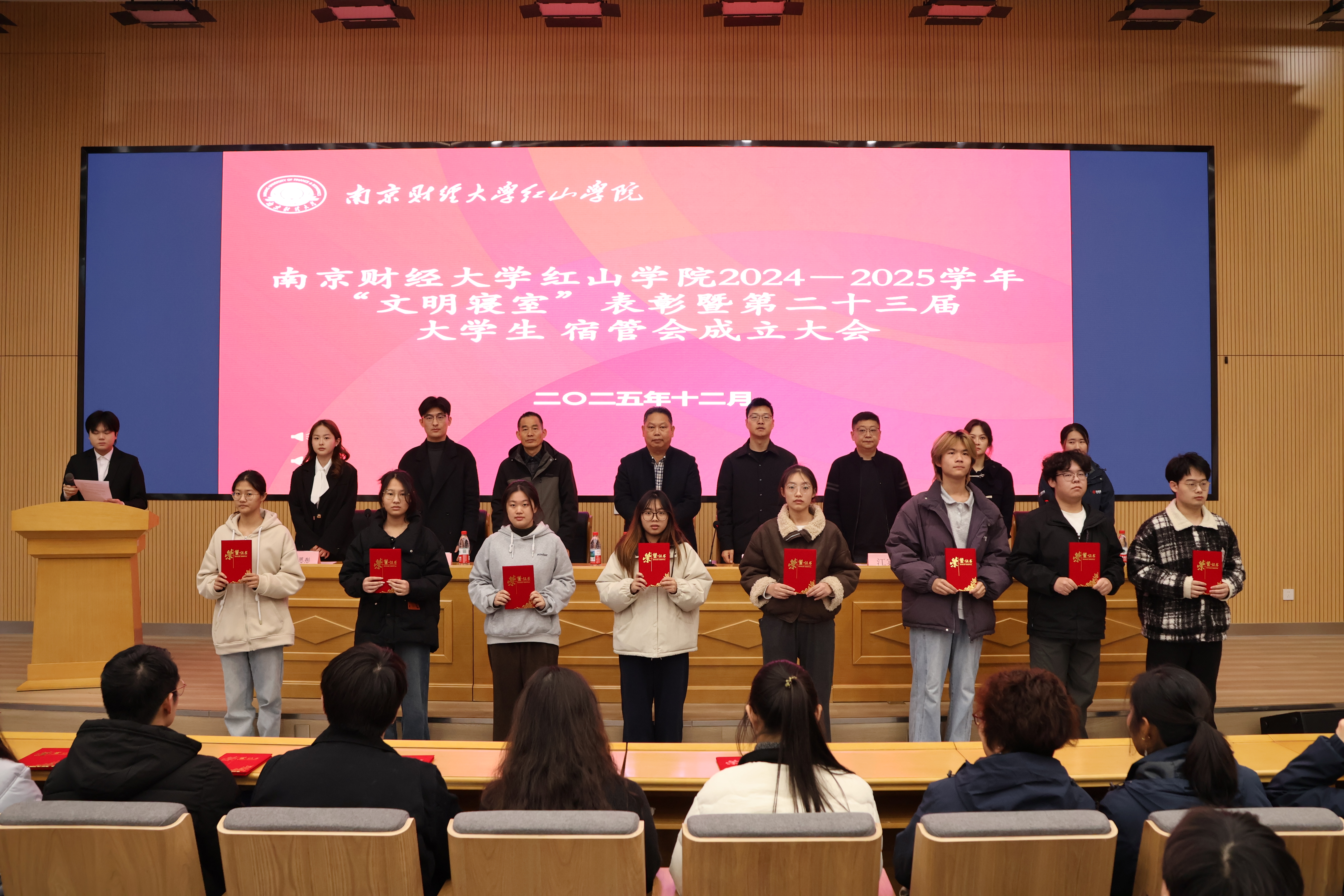 12月2日,学生社区管理与服务中心在公教楼第一报告厅召开2024-2025学年“文明寝室”表彰暨第二十三届大学生宿管会成立大会。党委学生工作部部长、学生处处长印文郁,后勤处副处长裔文,团委书记千继贤,学生社区管理与服务中心周建宏、曾露,保卫处江滨,南京银城有限责任公司红山项目经理杨娟,宿管会会长王思彤,辅导员老师代表、学生干部代表参加大会。