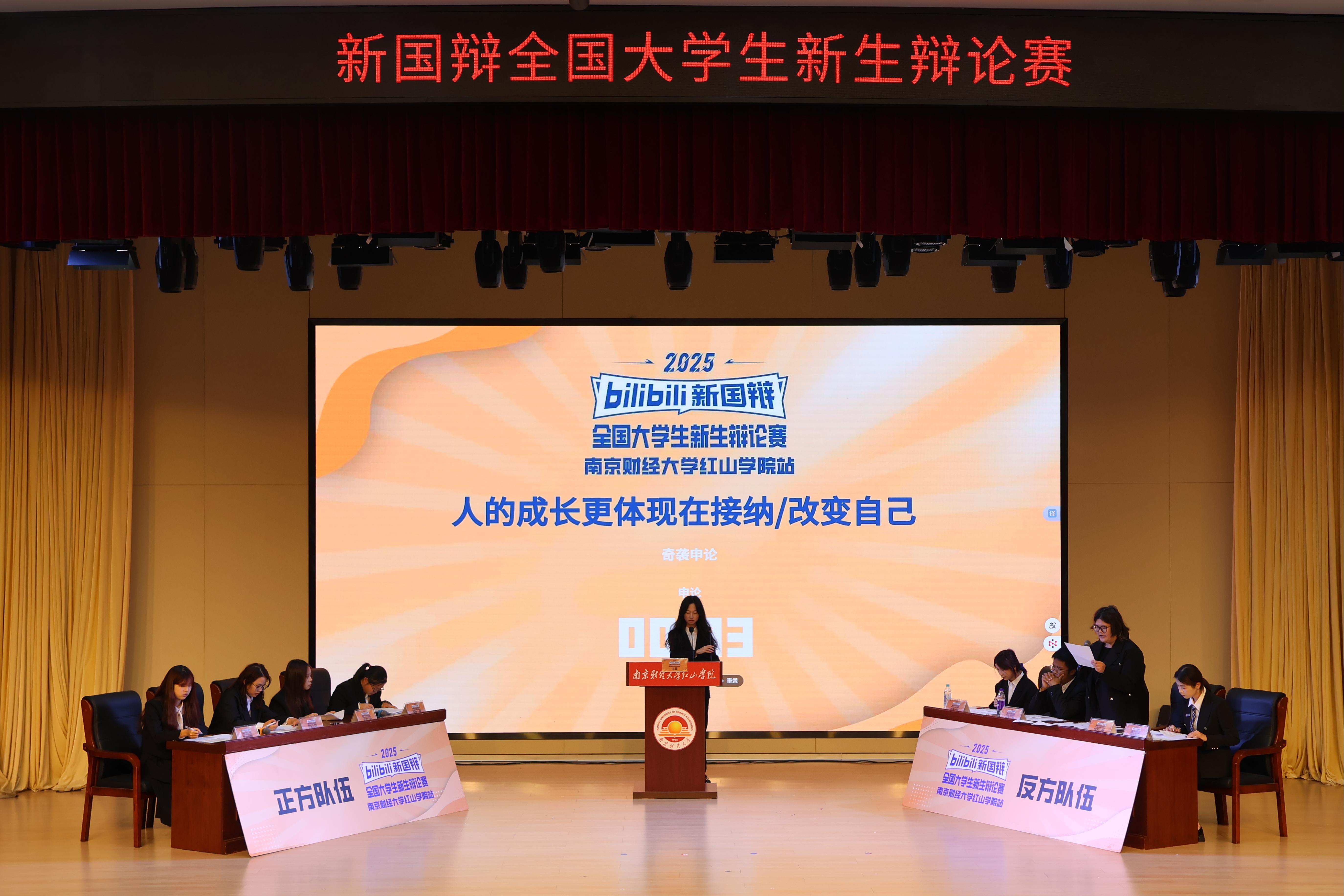 12月12日,枫荷辩论社在鹿鸣剧院举办“bilibili新国辩新生辩论赛”决赛。团委书记千继贤、金融税收学院团总支书记许艺蓝、辩论社指导老师邱海龙、社长赵栗和盖玉涛担任评委,决赛由李玲同学主持。师生代表齐聚一堂,现场观摩决赛。