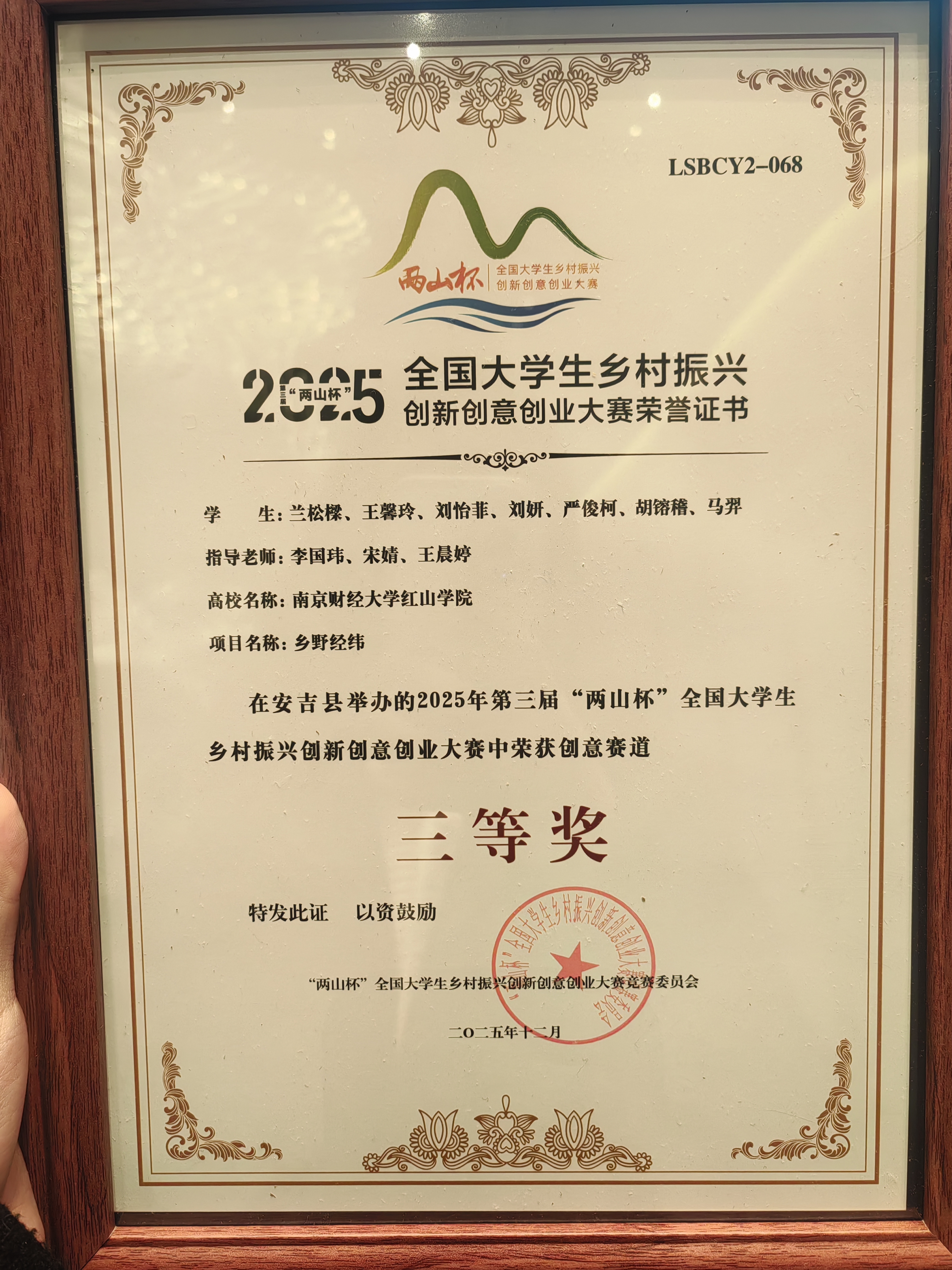 系列荣誉的取得,充分体现了我院学子在服务国家乡村振兴战略中的实际行动力,以及在发挥财经专业特长服务地方发展方面的能力。下一步,团队将持续优化项目体系,深化校地合作,推动农文旅融合项目落地,带动更多青年学子走进乡土、赋能乡村,在乡村振兴的广阔舞台上贡献青春力量。