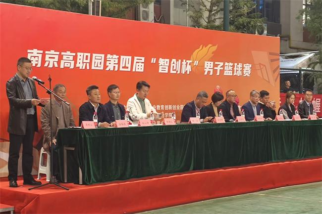 2025年10月27日晚,南京高职园第四届“智创杯”男子篮球赛在我院篮球场隆重开幕。来自高职园队、苏州科技大学天平学院队、南京财经大学红山学院队、南京理工大学紫金学院队、南京航空航天大学金城学院队、南京机电职业技术学院队、南京斯瑞奇医疗用品有限公司队、南京冠盛汽配有限公司队,共八支代表队出席开幕式。开幕式由我院体育部部长蒋世玉教授主持,学院执行院长倪征出席开幕式并致辞,强调了体育的育人价值。随后,南京市高职园管委会党工委副书记孔桂红正式宣布本届比赛开幕。