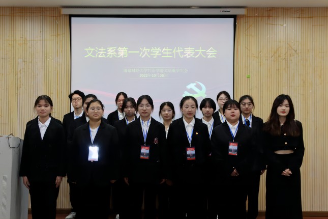 本次文法系学生代表大会的顺利召开,不仅架起了本系学生干部和青年学生沟通交流的桥梁,也是我系学生会回望历史、总结经验、展望未来的重要时间点。在系党支部、院团委和校学生会的悉心指导下,在全系青年学生的共同努力下,相信新一届学生会一定会在“务实创新、服务同学”的宗旨下求实、进取、创新, 共同创造南京财经大学红山学院文法系的辉煌未来。