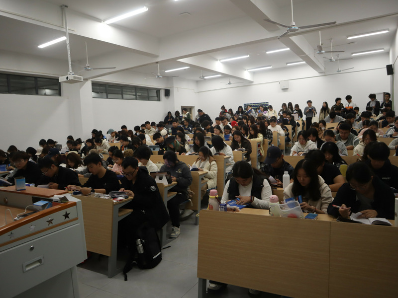为扎实推进新生入学教育工作,引导2025级新生全面了解学校规章制度,尽快适应大学生活并科学规划学业,10月28日晚,法学院与外国语学院联合利用晚自习时间,共同组织了《学生手册》专题学习活动。现场学习氛围浓厚,秩序井然。