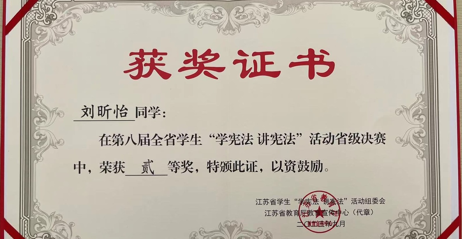 9月23日至24日,第八届全省学生“学宪法 讲宪法”活动省级决赛在南京审计大学浦口校区举行,经过层层选拔与激烈角逐,我院文法系法学2151班刘昕怡同学凭借在初赛中的亮眼表现,突出重围,喜获第八届全省学生“学宪法 讲宪法”活动省级二等奖,文法系系主任李磊老师荣获优秀指导教...