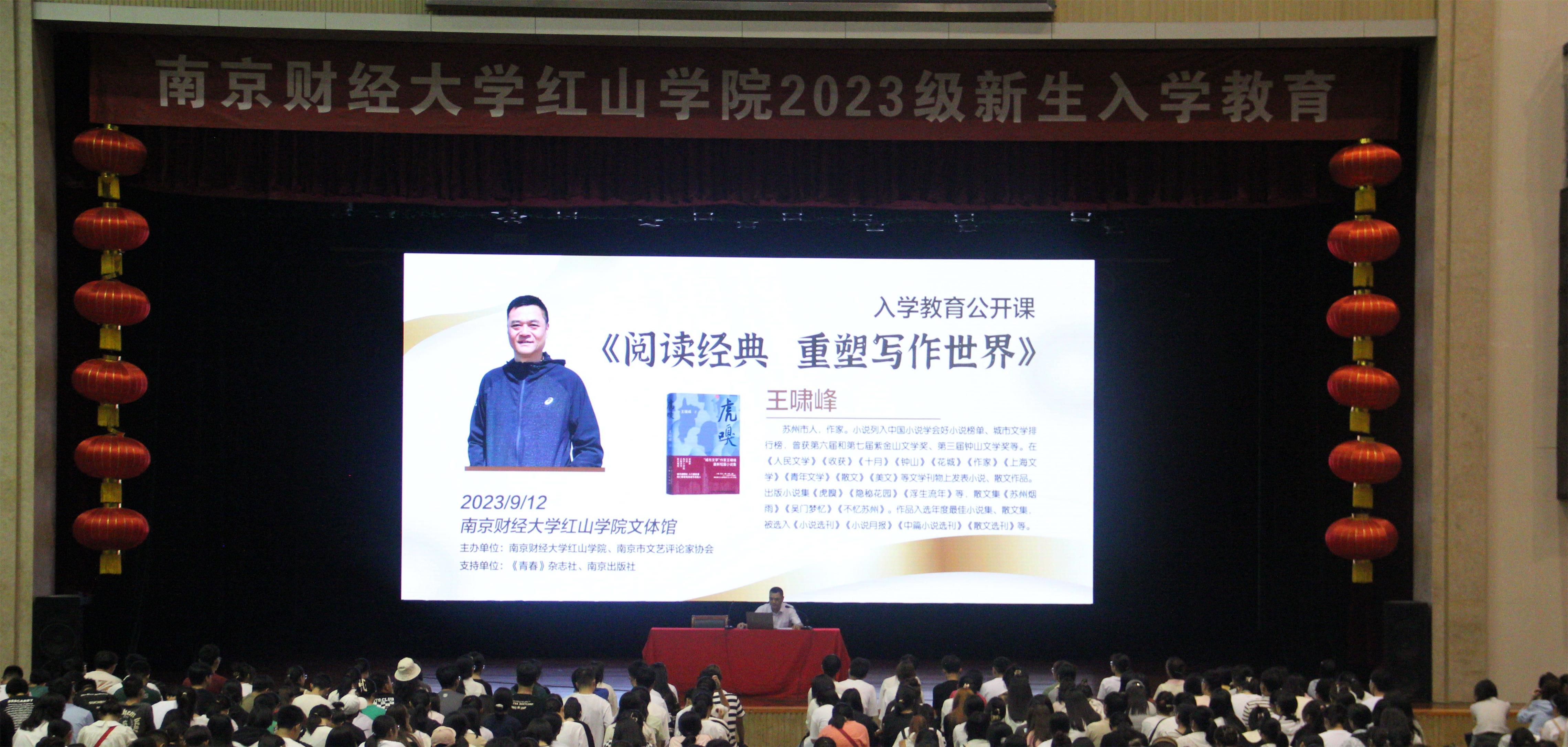 9月12日,我院特邀知名作家王啸峰在桥头校区文体馆做题为“阅读经典,重塑写作世界”的公开课,全体2023级新生参加。讲座由学院团委书记千继贤主持。