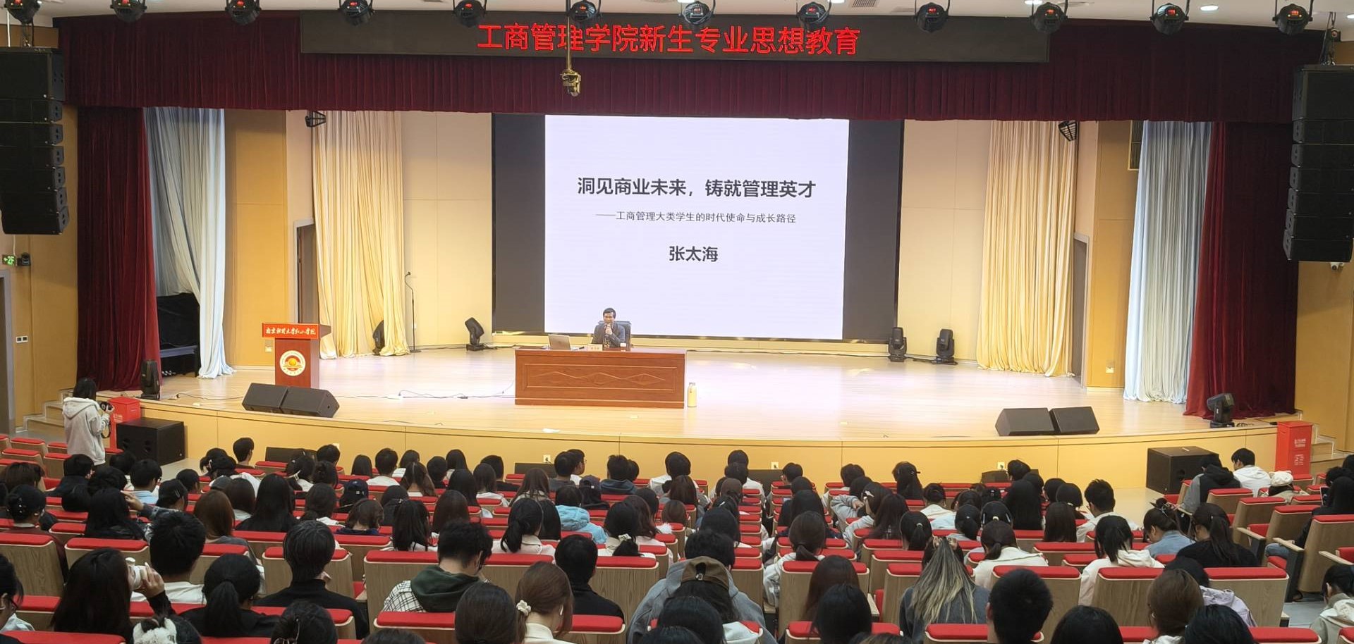 为帮助学生精准把握时代发展脉络、科学规划学业成长路径,11月12日晚,工商管理学院“洞见商业未来,铸就管理英才”——工商管理大类学生的时代使命和成长路径专业思想教育讲座在鹿鸣剧院顺利开展。工商管理学院党总支书记、院长张太海教授受邀主讲,工商管理学院2025级全体学生参加...