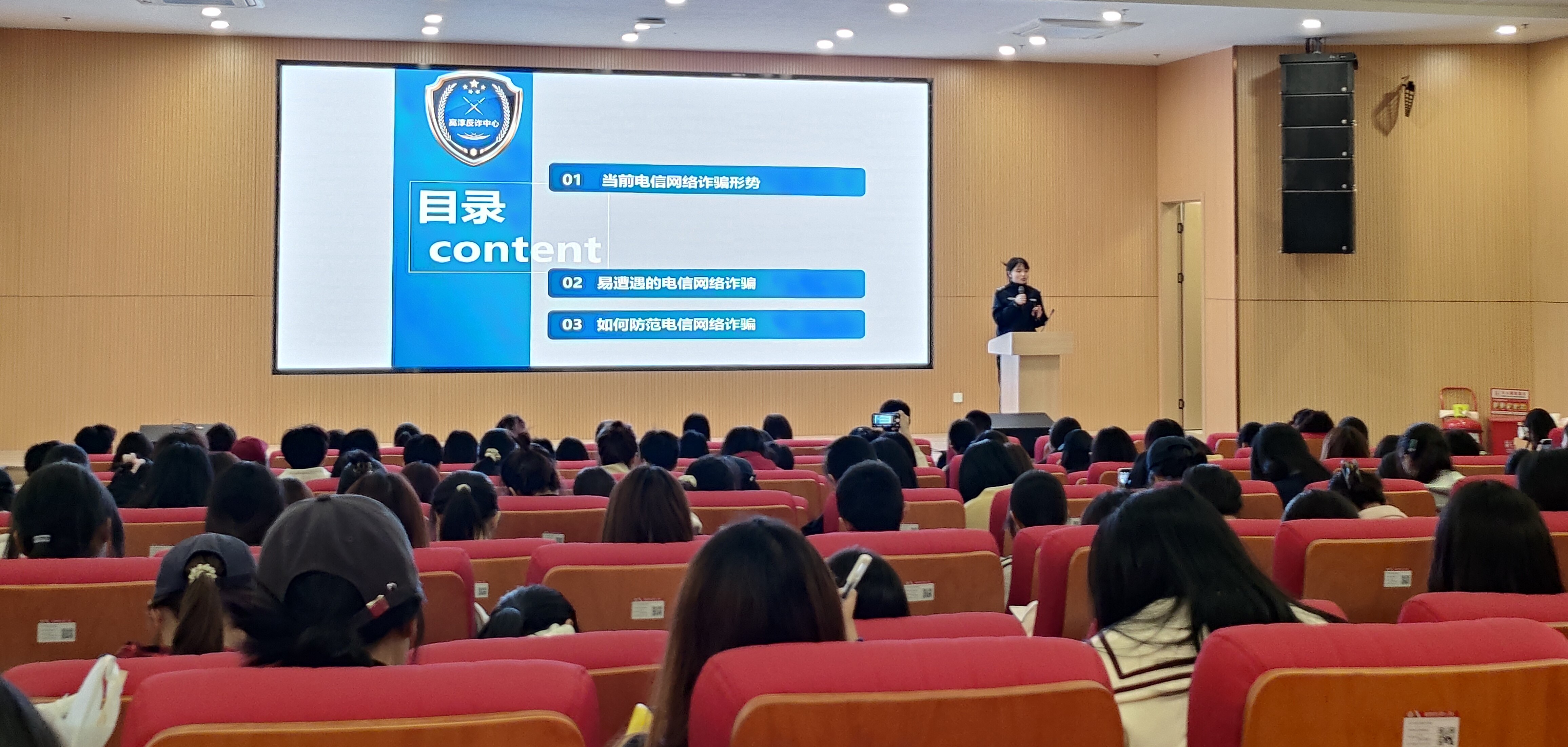 为全面提升师生防范电信网络诈骗的意识和能力,4月2日下午我院保卫处、学生处联合古柏派出所在第三报告厅举行防范电信诈骗专题培训会。本次活动由法韵知行社协办,特邀高淳区反诈宣讲团资深讲师徐玲娟警官担任主讲,近200名师生代表参加培训。