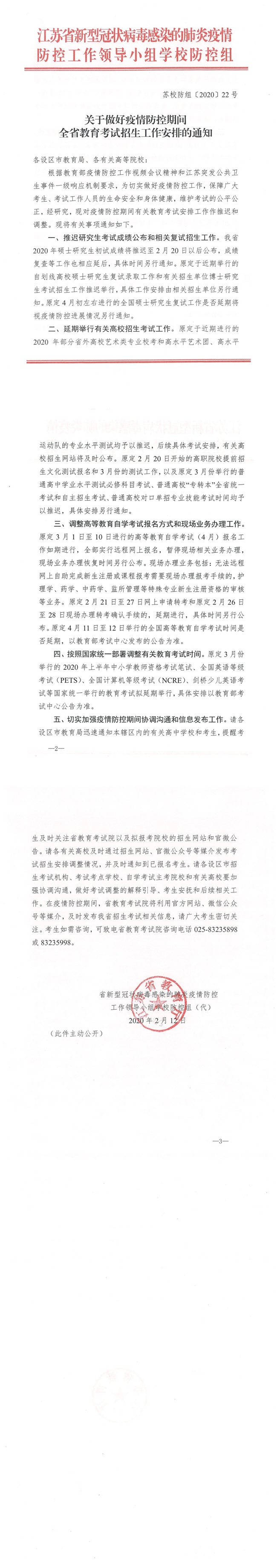 关于做好疫情防控期间全省教育考试招生工作安排的通知