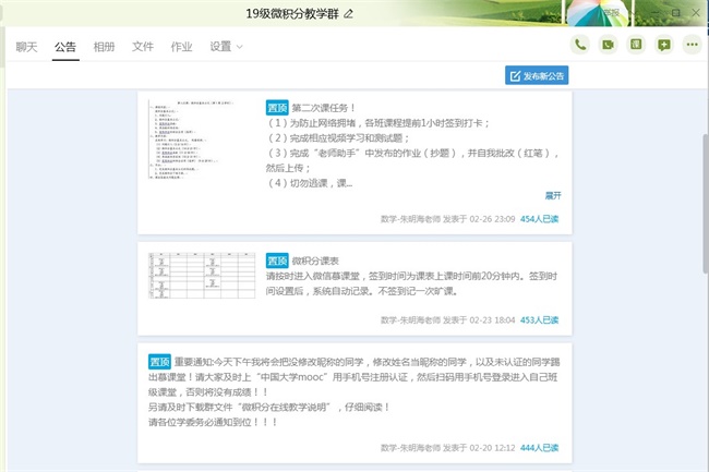 譬如文法系朱明海老师是我院《微积分III(下)》课程的主讲教师,开课前,朱老师建立了课程qq沟通群,通过微信小程序建立了“慕课堂”,制定了《微积分(下)在线教学说明》并发送给每一位学生。在开课第一天,朱老师克服了“教学平台卡顿”、“学生查看消息不及时”等重重困难,在“中国大学MOOC”上成功开展了第一堂课。同学们课堂反响热烈,学习积极,及时完成了在线学习。课后之余,朱老师积极总结反思教学过程中遇到的问题,利用周日空闲时间,在“腾讯课堂”上给同学们进行了3个小时的答疑。就这样,朱老师通过“在线自学-在线自测-完成作业-答疑解惑”的教学模式,圆满完成了第一周的教学任务。