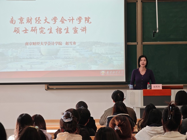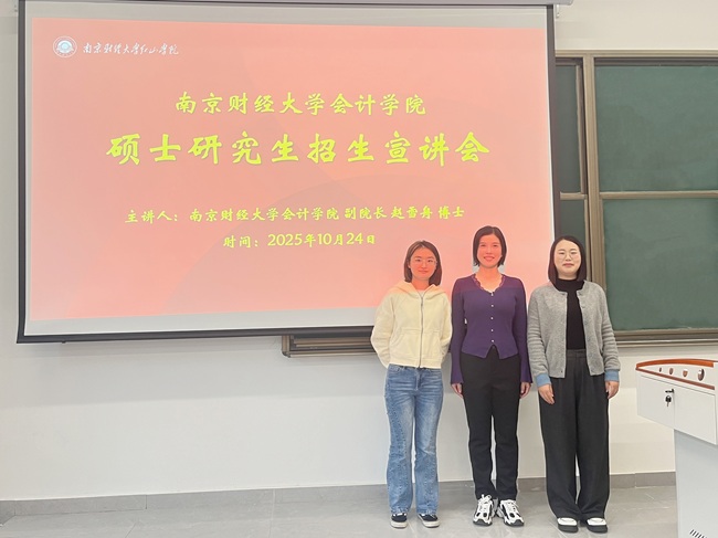 为搭建研究生招生单位与学生的信息互通平台,帮助学生精准把握考研动态、科学规划升学路径,10月25日下午,会计学院特邀南京财经大学会计学院副院长赵雪舟博士,在启智2 区104教室召开硕士研究生招生宣讲会。活动由会计学院辅导员钱伶俐组织,党总支副书记王颖主持,会计学院大四学生积极参与。
