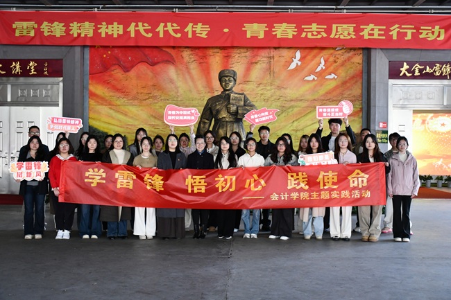 为大力弘扬雷锋精神,引导青年师生体悟其时代内涵,3月25日下午,会计学院院长孟翠湖带队赴溧水区大金山国防园开展“学雷锋,悟初心,践使命”主题实践活动。会计学院党总支副书记王颖、团总支书记李景程、会计学院审计学专业党支部书记吴昊冉及学生代表共30名师生参加。