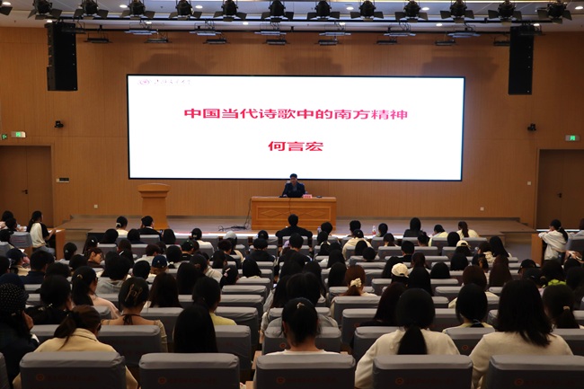 整场讲座脉络清晰、内涵深刻,何言宏教授以通俗语言将诗学理论与诗歌文本结合,带领师生走进南方诗歌的精神世界。现场师生认真聆听、积极思考,在诗意熏陶中提升了文学审美素养。
